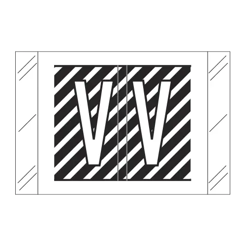 Black Barkley FASTM Compatible Alpha Labels of size 1" X 1-1/2" with Individual Letter "V", Laminated Stock Packaged in Roll Of 500