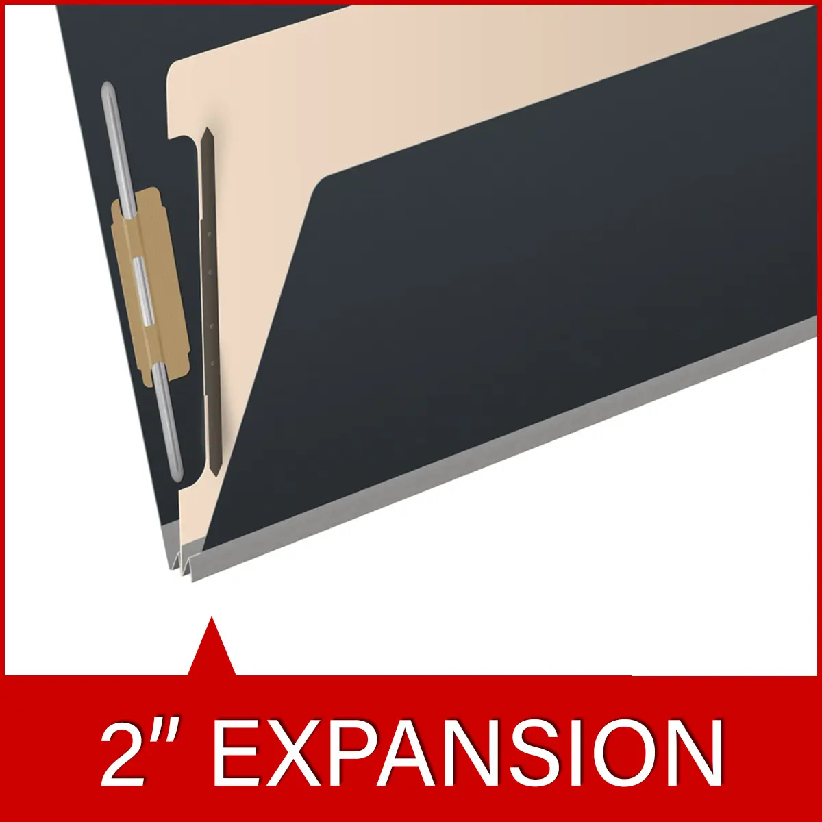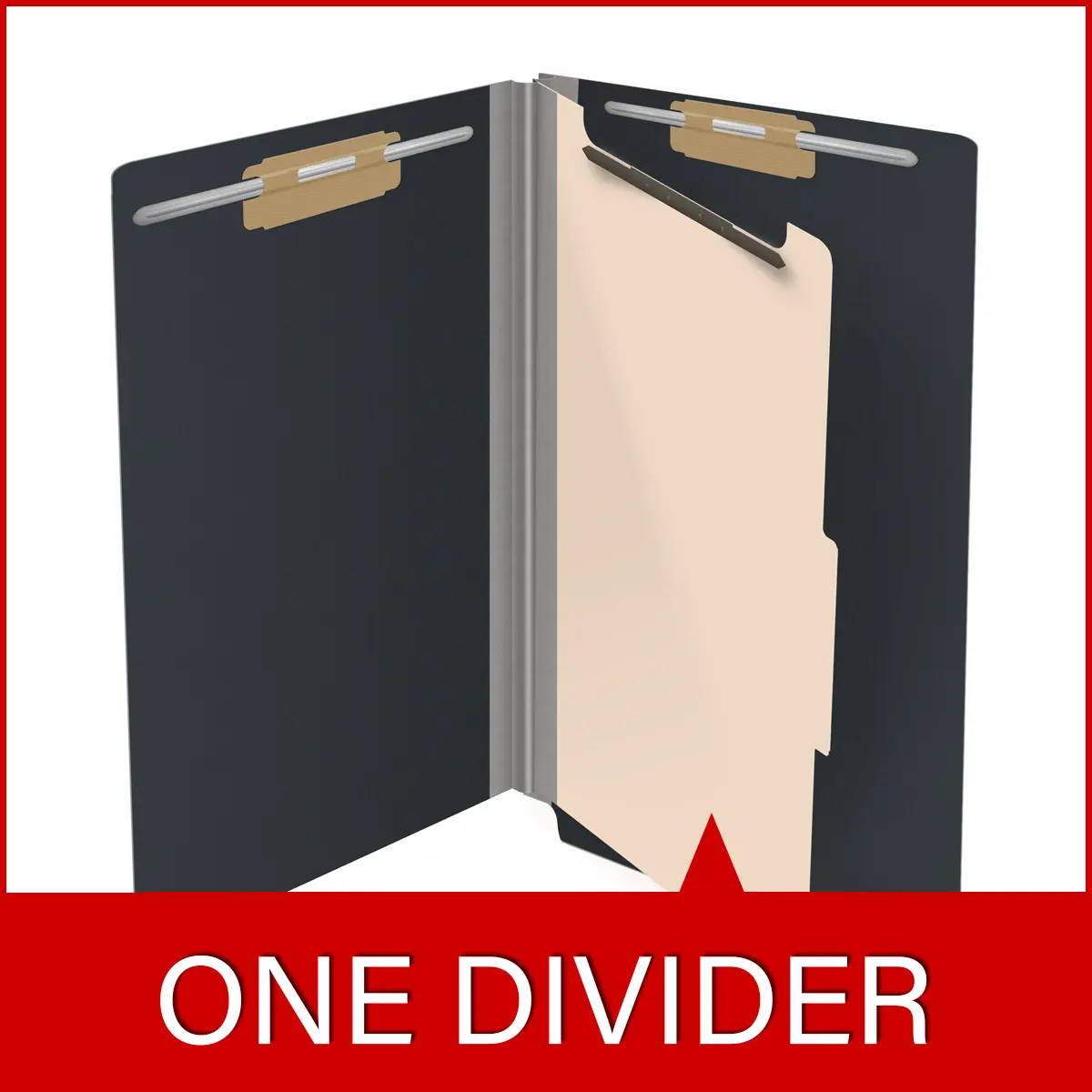 Black Legal Size End Tab One Divider Classification Folder with 2" Gray Tyvek Expansion and 2" Bonded Fasteners on Inside Front and Back and 1" Duo Fastener on Divider, 25 pt Type 3 Pressboard Stock Covers and 18 pt Manila Divider, Packaged 10/50