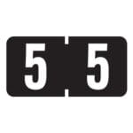Black Tab Compatible Mini Numeric Labels of size 1/2″ X 1″ with Individual Number “5”, Vinyl Stock, Packaged in Roll of 1000