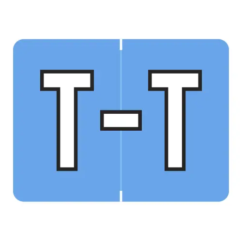 Blue Datafile Compatible Alpha Labels of size 15/16″ X 1-1/4″ with Individual Letter “T”, Vinyl Stock, Packaged in Roll of 500