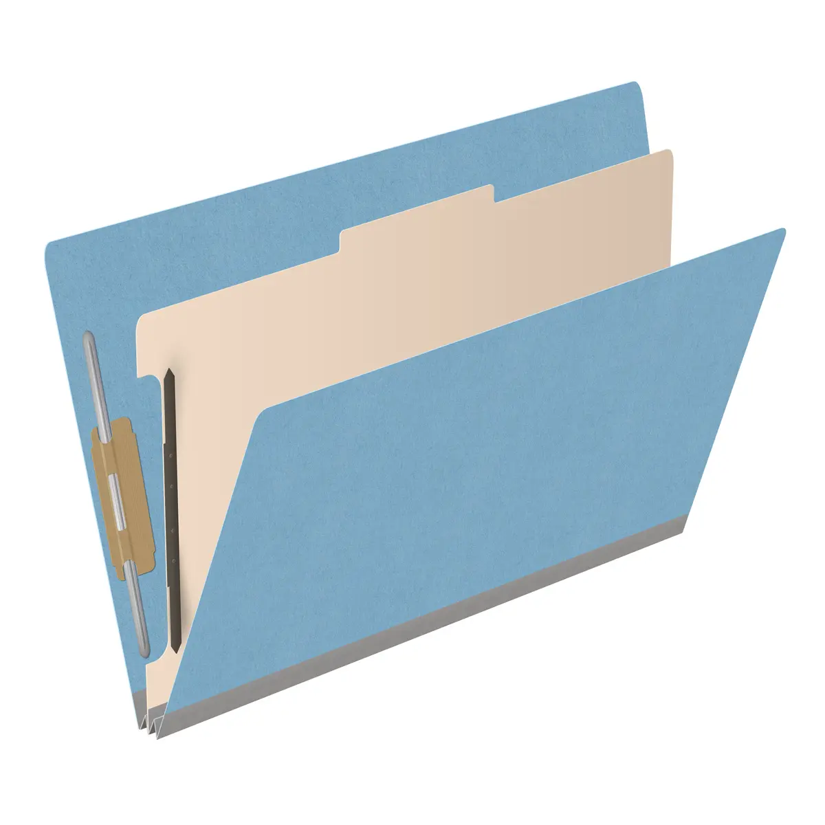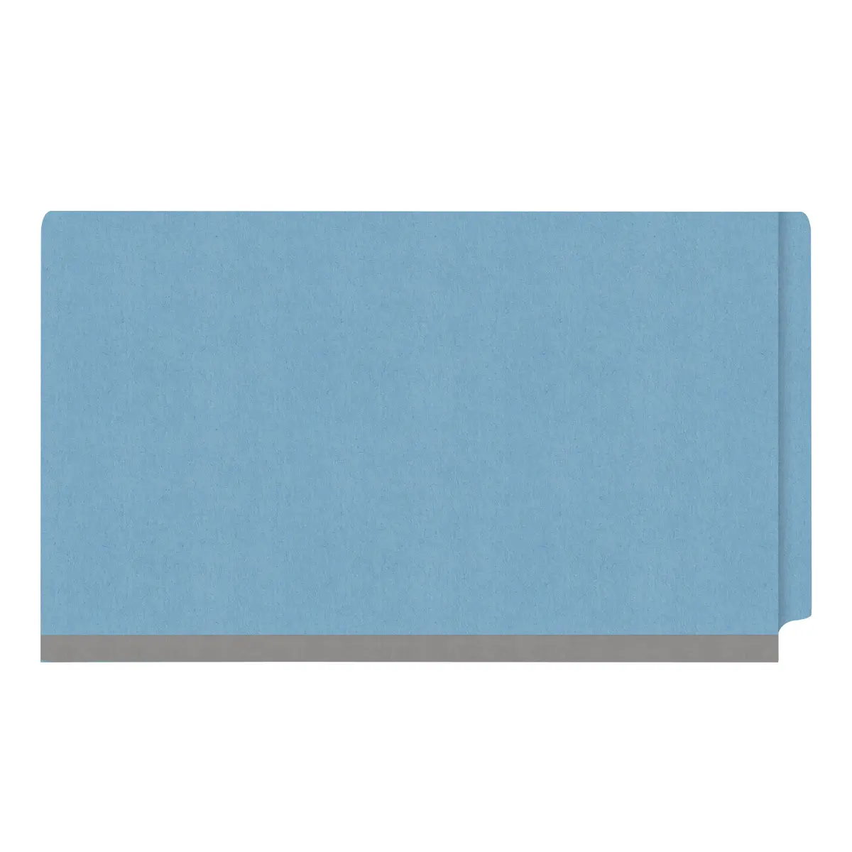 Blue legal size end tab classification folder with 2" gray tyvek expansion, with 2" bonded fasteners on inside front and inside back and 1" duo fastener on divider, 18 pt paper stock and 18 pt manila divider, Packaged 10/50