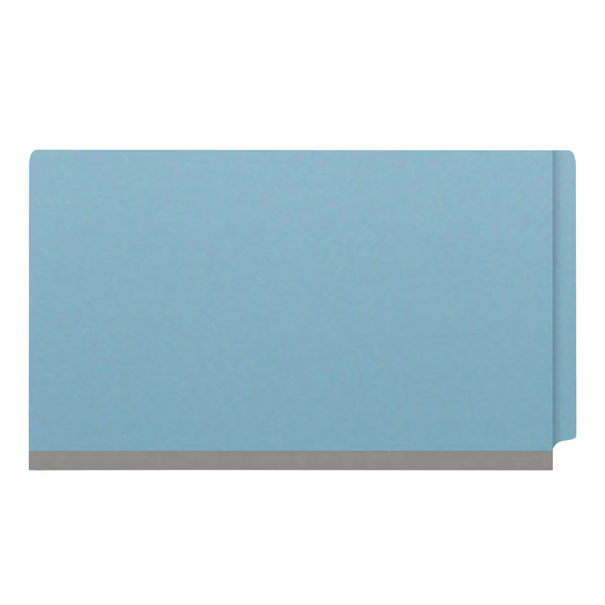 Blue Legal Size End Tab Two Divider Classification Folder with 2" Gray Tyvek Expansion and 2" Bonded Fasteners on Inside Front and Inside Back and 1" Duo Fastener on Dividers, 25 pt Type 3 Pressboard Stock Covers and 18 pt Manila Dividers, Packaged 10/50