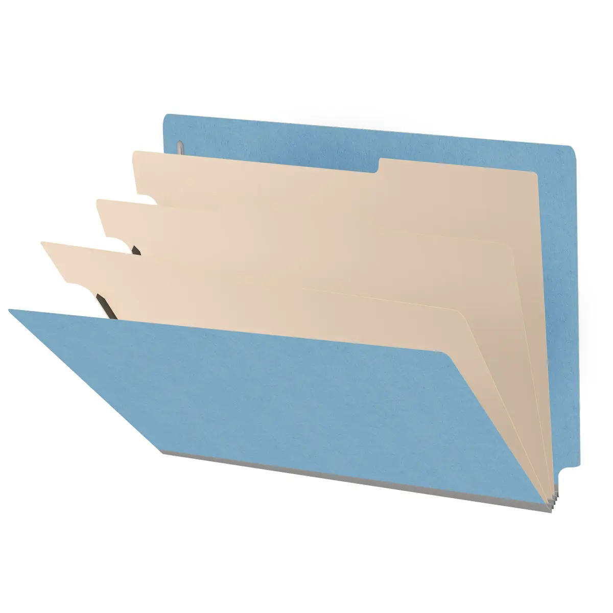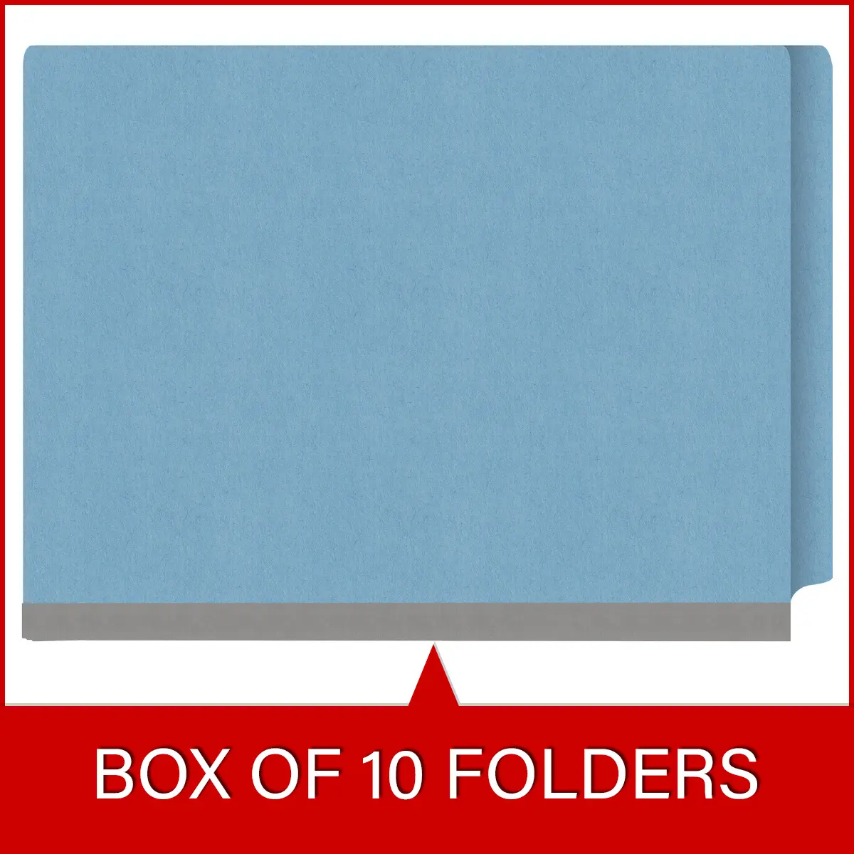 Blue letter size end tab classification folder with 3" gray tyvek expansion, with 2" bonded fasteners on inside front and inside back and 1" duo fastener on dividers, 18 pt paper stock and 18 pt manila dividers, Packaged 10/50
