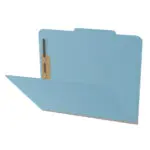 Grey legal size end tab classification folder with 2" gray tyvek expansion, with 2" bonded fasteners on inside front and inside back and 1" duo fastener on divider, 18 pt paper stock and 18 pt manila divider, Packaged 10/50