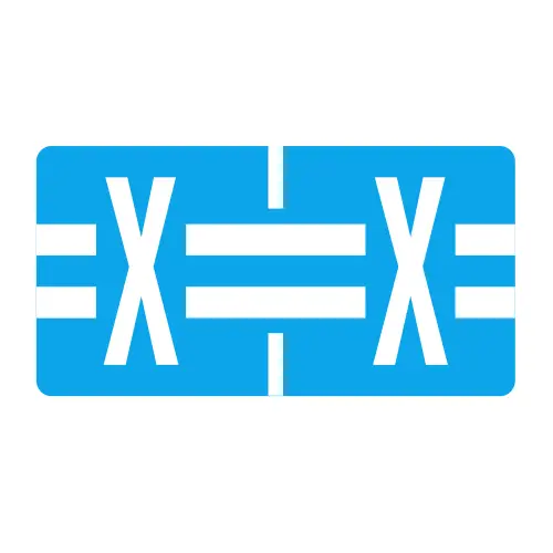 Blue TBAV Compatible Alpha labels of size 1/2" X 1" with Individual Letter "X", Vinyl Stock Packaged in roll of 500