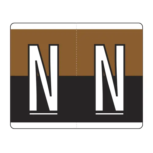 Brown/Black Kardex PSF-139 Compatible Alpha Labels of size 1-1/4" x 1-1/2" with Individual Letter "N", Laminated Stock Packaged in Roll of 500