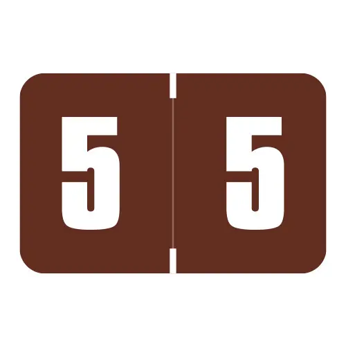 Brown Digi Color Compatible Numerical Labels of size 15/16" X 1-5/8" with Individual Number "5", Laminated Stock, Packaged in Roll of 250