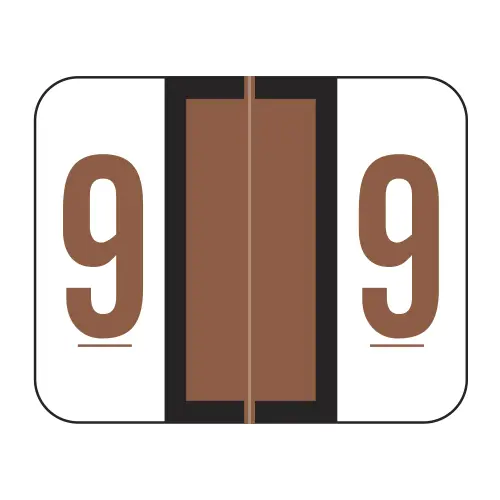 Brown Smead BCCRN Compatible Numeric Labels of size 1" X 1-1/4" with Individual Number "9", Laminated Stock, Packaged in Roll of 500
