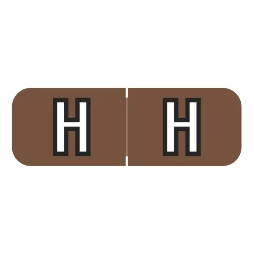 Dark Brown Barkley FABAM Compatible Alpha Labels of size 1/2" X 1-1/2" with Individual Letter "H", Vinyl Stock, Packaged in Roll of 500