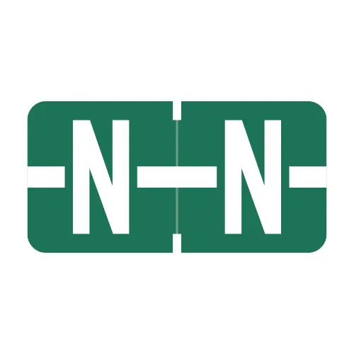 Dark Green Tab 1278 Compatible Alpha Labels of size 1/2" X 1" with Individual Letter "N", Vinyl Stock, Packaged in Roll of 500