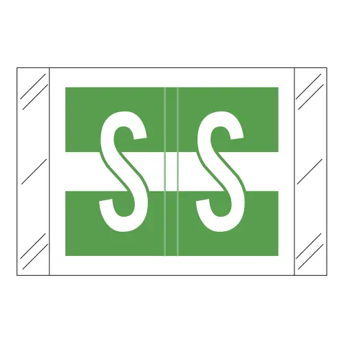 Dark Green Tabbies 12030 Compatible Alpha Labels of size 1" X 1-1/2" with Individual Letter "S", Laminated Stock Packaged in Roll Of 500