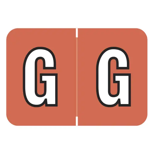 Dark Orange Colwell Jewel Tone Compatible Alpha Labels of size 1" X 1-1/2" with Individual Letter "G", Laminated Stock Packaged in Roll Of 500