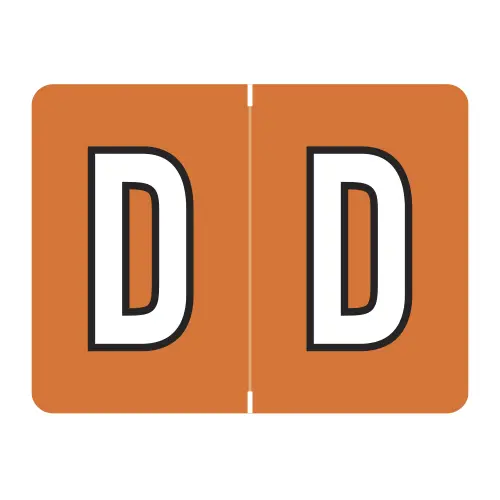 Dark Orange Datafile Compatible Alpha Labels of size 15/16" X 1-1/4" with Individual Letter "D", Vinyl Stock, Packaged in Roll of 500