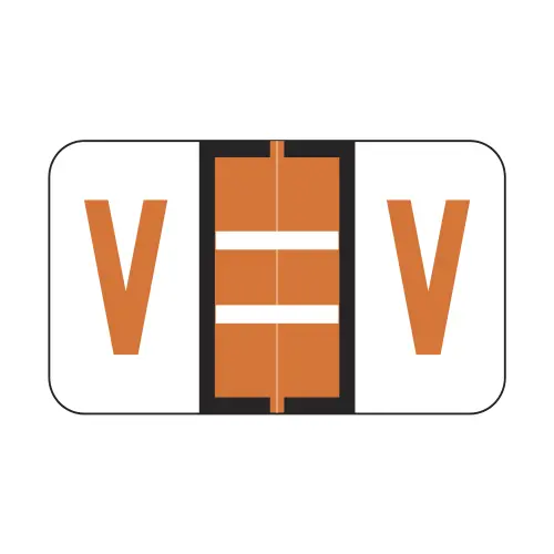 Dark Orange Jeter 5100 Compatible Alpha Labels of size 15/16" X 1-5/8" with Individual Letter "V", Laminated Stock Packaged in roll of 500