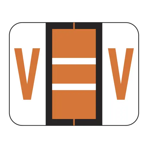 Dark Orange Tab 1283 Compatible Alpha Labels of size 1" X 1-1/4" with Individual Letter "V", Vinyl Stock, Packaged in Roll of 500