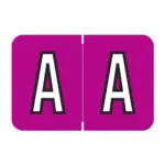 Dark Pink Barkley FACPM Compatible Alpha Labels of size 1″ X 1-1/2″ with Individual Letter “A”, Vinyl Stock, Packaged in Roll of 500