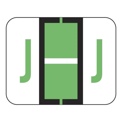 Fluorescent Green File Doctor Compatible Alpha Labels of size 1" X 1-1/4" with Individual Letter "J", Laminated Stock Packaged in Roll Of 500
