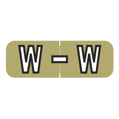 Gold Barkley FABAM Compatible Alpha Labels of size 1/2" X 1-1/2" with Individual Letter "W", Vinyl Stock, Packaged in Roll of 500
