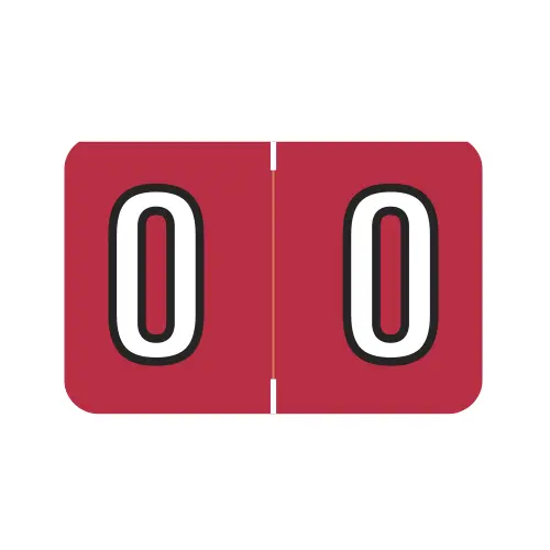 Red Barkley NBKM Compatible Numeric Labels of size 1" X 1-1/2" with Individual Number "0", Laminated Stock, Packaged in Roll of 500