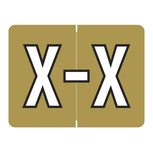 Gold Datafile Compatible Alpha Labels of size 15/16″ X 1-1/4″ with Individual Letter “X”, Vinyl Stock, Packaged in Roll of 500