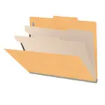 Gold letter size top tab classification folder with 2″ gray tyvek expansion, with 2″ bonded fasteners on inside front and inside back and 1″ duo fastener on dividers, 18 pt paper stock and 18 pt manila dividers, Packaged 10/50