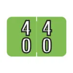 Green Barkley BXDM Compatible Double Digit Labels of size 1" X 1-1/2" with Individual Number "40", Laminated Stock, Packaged in Roll of 500