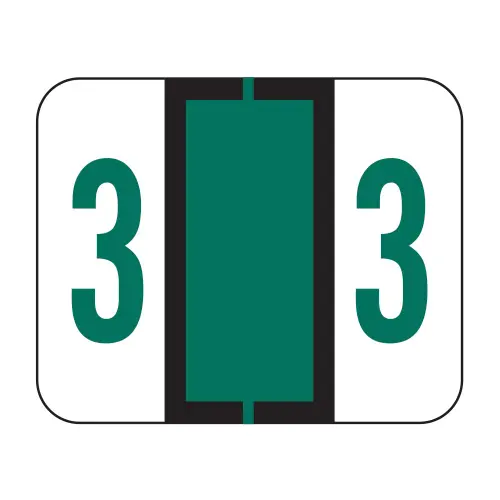 Green File Doctor Compatible Numerical Labels of size 1" X 1-1/4" with Individual Number "3", Laminated Stock, Packaged in Roll of 500