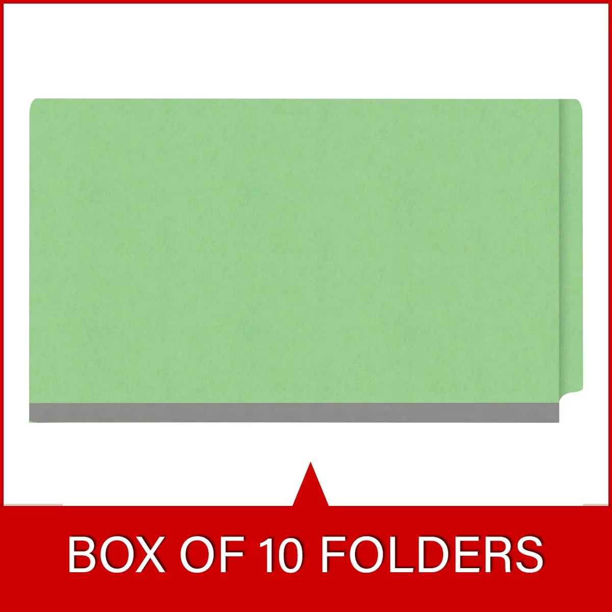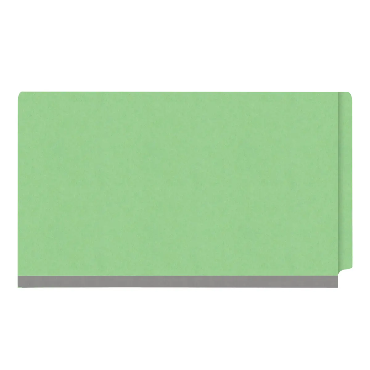 Green legal size end tab classification folder with 3" gray tyvek expansion, with 2" bonded fasteners on inside front and inside back and 1" duo fastener on dividers, 18 pt paper stock and 18 pt manila dividers, Packaged 10/50