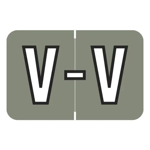 Grey Barkley ABKM Compatible Alpha Labels of size 1" X 1-1/2" with Individual Letter "V", Vinyl Stock, Packaged in Roll of 500