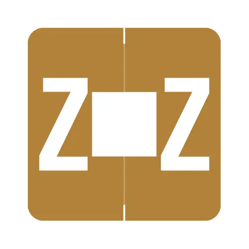 Light Brown Barkley FADBM Compatible Alpha Labels of size 1-1/2" X 1-1/2" with Individual Letter "Z", Vinyl Stock, Packaged in Pack of 228