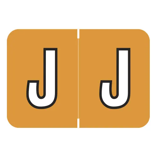 Light Orange Colwell Jewel Tone Compatible Alpha Labels of size 1″ X 1-1/2″ with Individual Letter “J”, Laminated Stock Packaged in Roll Of 500