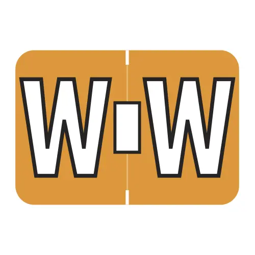 Light Orange Colwell Jewel Tone Compatible Alpha Labels of size 1" X 1-1/2" with Individual Letter "W", Laminated Stock Packaged in Roll Of 500