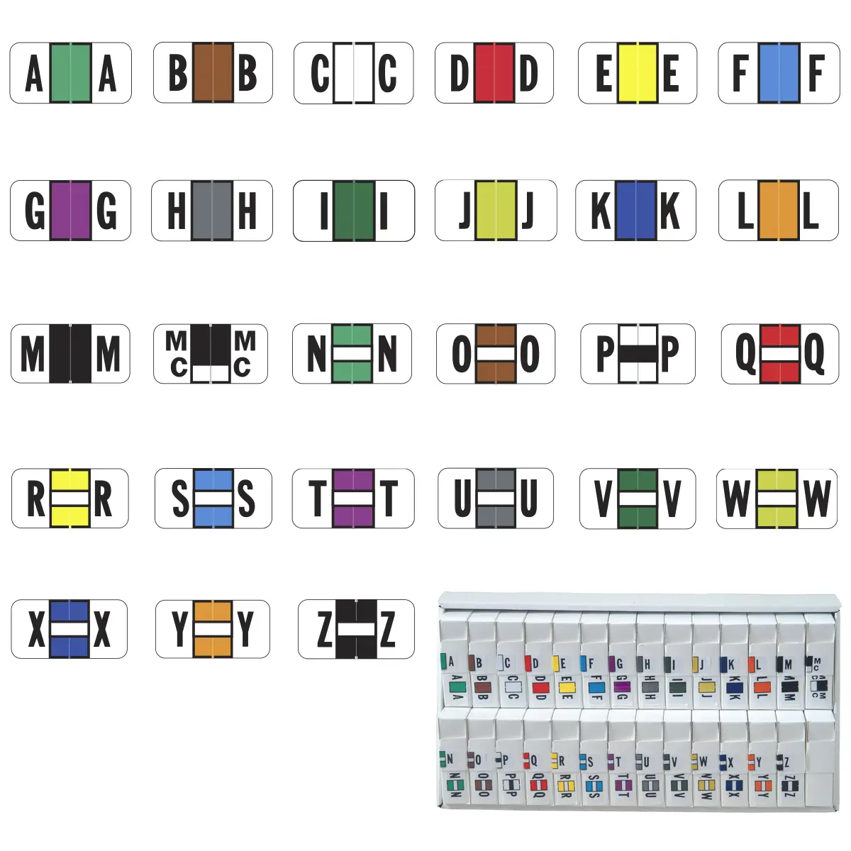Multiple Color Jeter 2900 Compatible Alpha Labels of size 3/4″ X 1-1/2″ with Individual Letter “A-Z”plus Mc, Laminated Stock Packaged in 27 Rolls Of 500