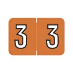 Orange Barkley NBKM Compatible Numeric Labels of size 1″ X 1-1/2″ with Individual Number “3”, Laminated Stock, Packaged in Roll of 500