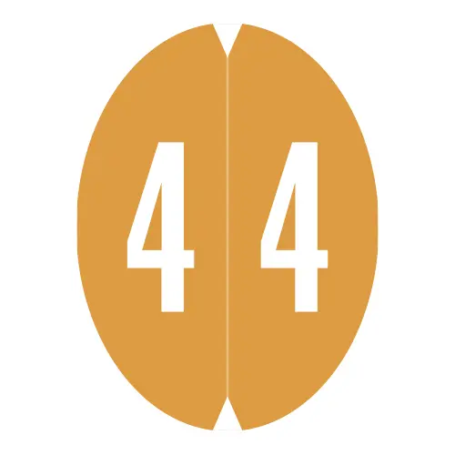 Orange GBS Compatible Oval Numeric Labels of size 1-1/2″ X 1-1/8″ with Individual Number “4”, Laminated Stock, Packaged in Roll of 500