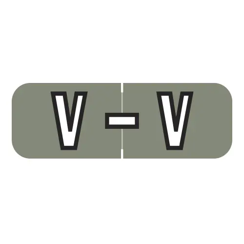 Pale Green Barkley FABAM Compatible Alpha Labels of size 1/2″ X 1-1/2″ with Individual Letter “V”, Vinyl Stock, Packaged in Roll of 500
