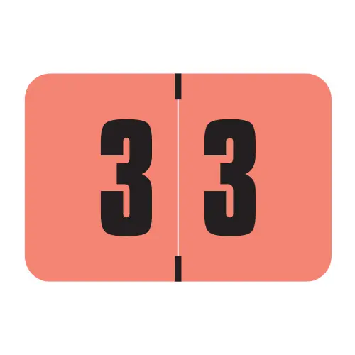 Pink Digi Color Compatible Numerical Labels of size 1″ X 1-1/2″ with Individual Number “3”, Laminated Stock, Packaged in Roll of 250