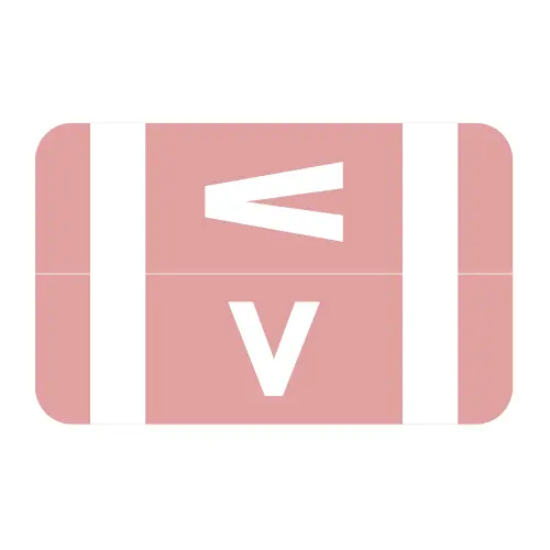 Pink Tab/Smead ACCS Compatible Alpha labels of size 1-5/8" X 1" with Individual Letter "V", Laminated Stock Packaged in pack of 100