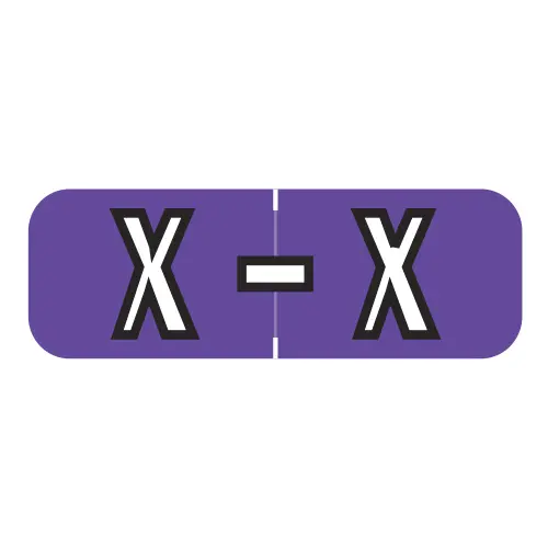 Purple Barkley FABAM Compatible Alpha Labels of size 1/2″ X 1-1/2″ with Individual Letter “X”, Vinyl Stock, Packaged in Roll of 500