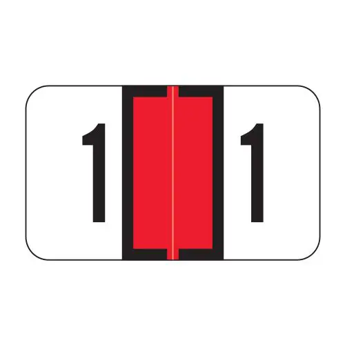 Red Jeter 0300 Compatible Numerical Labels of size 15/16" X 1-5/8" with Individual Number "1", Laminated Stock, Packaged in Roll of 500