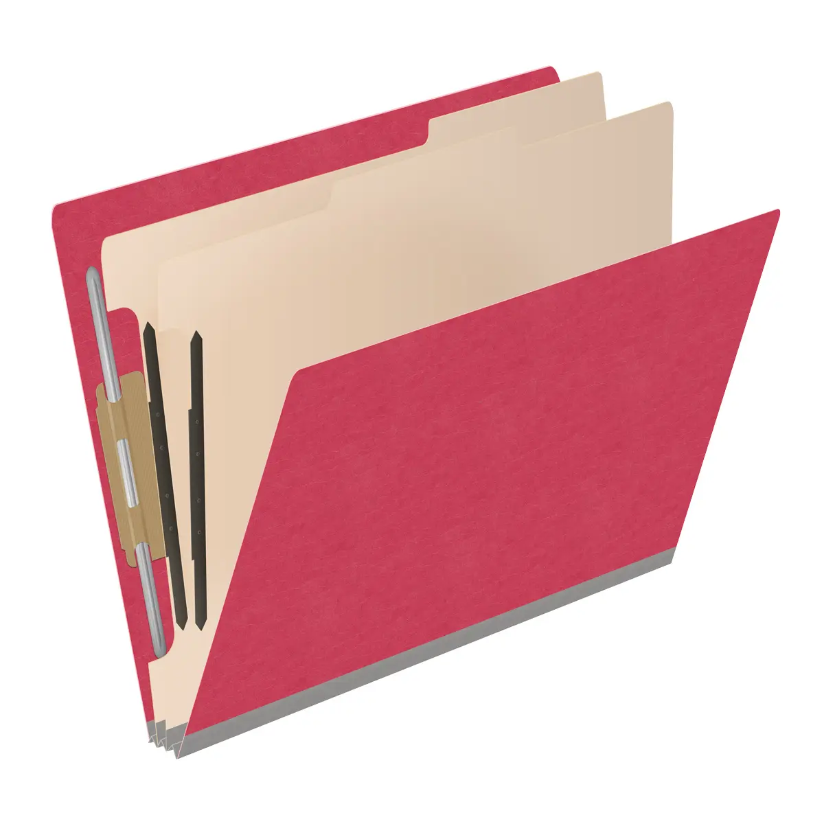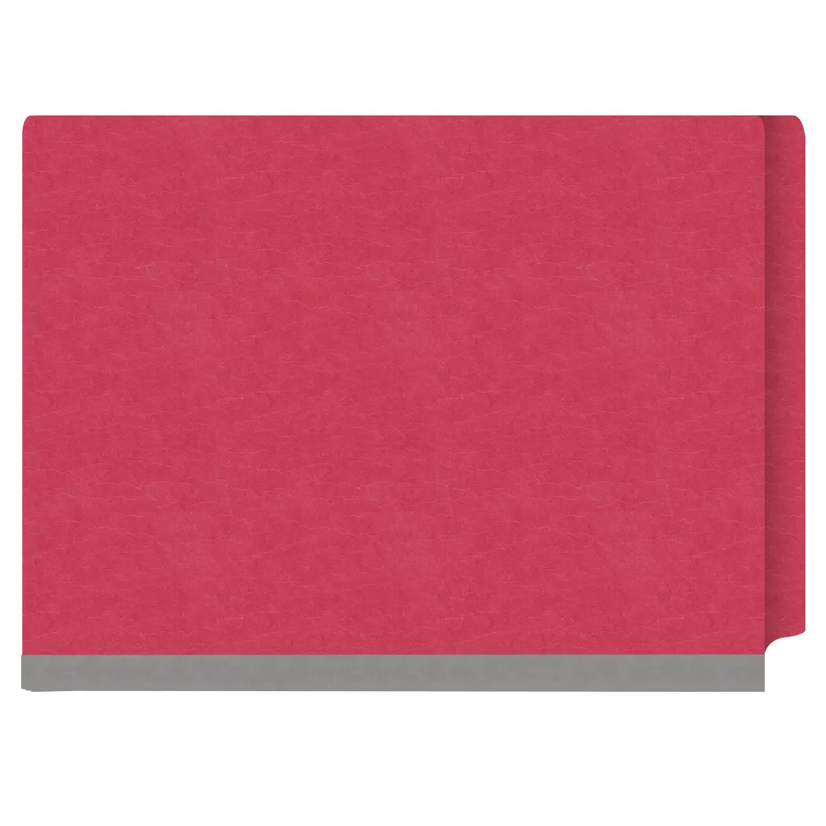 Red letter size end tab classification folder with 2" gray tyvek expansion, with 2" bonded fasteners on inside front and inside back and 1" duo fastener on dividers, 18 pt paper stock and 18 pt manila dividers, Packaged 10/50