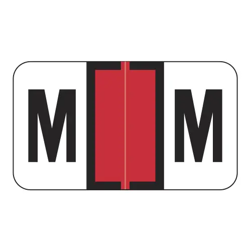 Red Safeguard 514 Compatible Alpha labels of size 15/16″ X 1-5/8″ with Individual Letter “M”, Laminated Stock Packaged in roll of 500