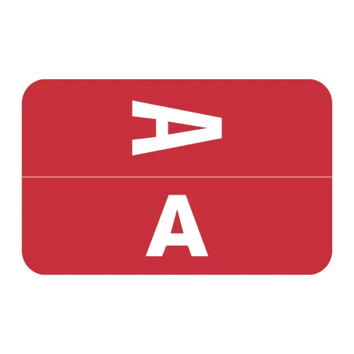 Red Tab/Smead ACC Compatible Alpha labels of size 1-5/8" X 1" with Individual Letter "A", Laminated Stock Packaged in roll of 250