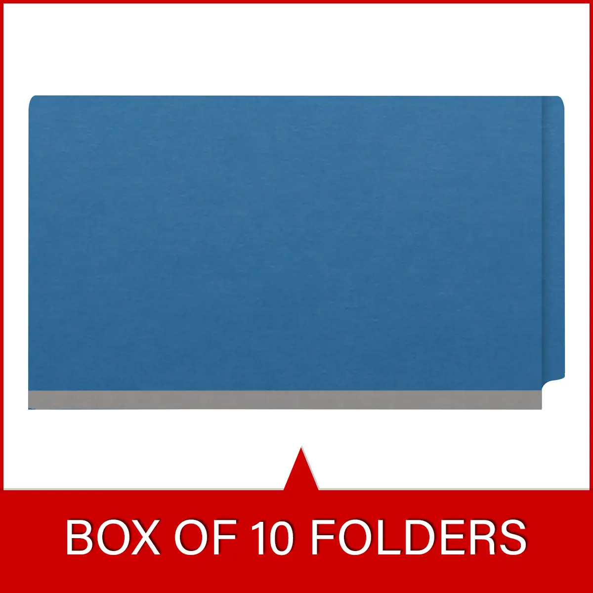 Royal Blue Legal Size End Tab One Divider Classification Folder with 2″ Dark Blue Tyvek Expansion and 2″ Bonded Fasteners on Inside Front and Back and 1″ Duo Fastener on Divider, 25 pt Type 3 Pressboard Stock Covers and 18 pt Manila Divider, Packaged 10/50