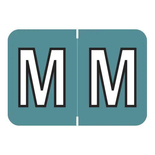 Sterling Blue Colwell Jewel Tone Compatible Alpha Labels of size 1″ X 1-1/2″ with Individual Letter “M”, Laminated Stock Packaged in Roll Of 500