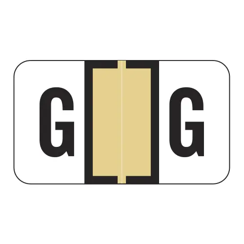 Tan Safeguard 514 Compatible Alpha labels of size 15/16" X 1-5/8" with Individual Letter "G", Laminated Stock Packaged in roll of 500