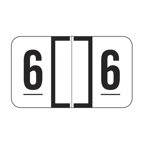 White Jeter 2600 Compatible Numerical Labels of size 15/16" X 1-5/8" with Individual Number "6", Laminated Stock, Packaged in Roll of 500