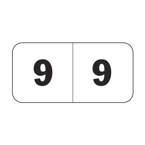White Jeter 4500 Compatible Numerical Labels of size 3/4" X 1-1/2" with Individual Number "9", Laminated Stock, Packaged in Roll of 500